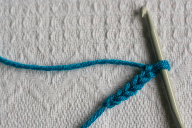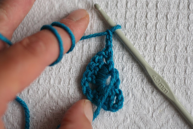 Tady háčkuju z příze Merino od Vlnapu, odstín Tm. tyrkys - 14777, háček č. 4.