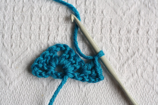 Dokud máme lícovou stranu otočenou k sobě, uháčkujeme 3ŘO (opět nahrazují 1DS).
